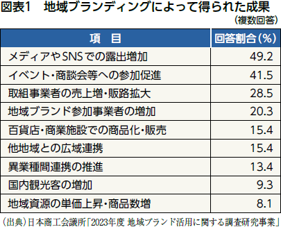 実際、全国の商工会議所を対象とした調査によると、地域ブランドの活用によって「メディアやSNSでの露出が増えた」「商談会やイベントへの参加が促進された」「売り上げや販路の拡大につながった」といった成果が報告されています(図表1)。これらの成果は、地域ブランドが単なる名称ではなく、販路開拓や認知度向上といった“実利”にもつながることを示しています。