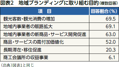 さらに、地域ブランドは、商品やサービスの認知向上にとどまらず、観光誘致や移住促進といった地域政策の分野でも効果が期待されています。地域ブランディングに取り組む目的として、「観光客数・観光消費の増加」「販路拡大」「新商品・サービス開発の促進」が上位に挙げられており(図表2)、その活用が経済活動の枠を超えて、地域全体の活性化に寄与していることが伺えます。